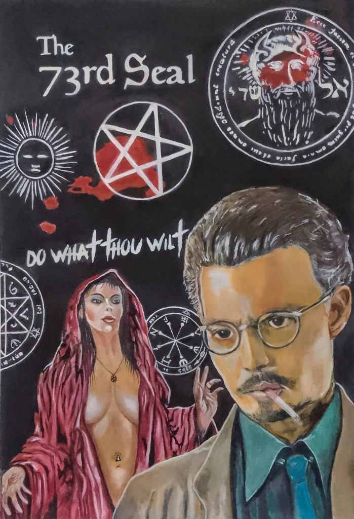 This concept art for a new Johnny Depp movie What could you do differently? Following the Ninth gate made in 1999 Johnny Depp is back in the 73rd Seal. Concept poster painted with gouache and coloured pencils. Size A2 Share this: Share on X (Opens in new window) X Share on Facebook (Opens in new window) Facebook Like Loading... Related