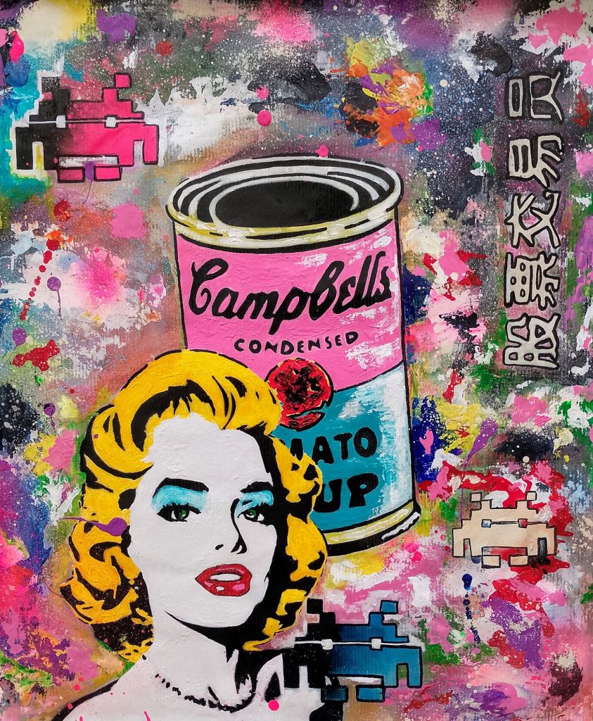 Painted with acrylic onto mailing paper with brush and marker pen. I love street and pop art and Mr Brainwash has really inspired me to be creative. Anyone can do this style of art and it’s fun. Go on have a go yourself and get messy. Gets rid of any stress as well in this mad world and it’s colorful and cheerful.