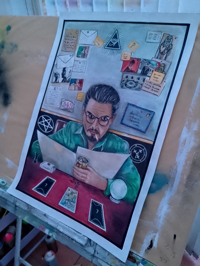I enjoy concept art and creating new spins on old things. Taking things up a level excites me as it’s challenging. This is a vision board painting. Size A2. Gouasche on paper.