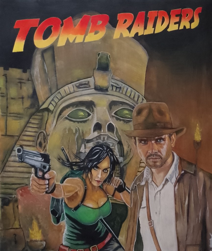 Tom raiders was painted with gouasche and this took nearly 2 weeks. This was again a concept piece with many struggles along the way. I find that general tone of colour in gouasche paint can produce nice effects better than acrylic but it’s such a slow process. With acrylic it’s forgiving when you make a mistake as you can just paint over it but with gouasche paint you can end up repairing an entire section and it takes longer. Believe it or not the title in Tomb raiders is actually acrylic paint for it’s bold brightness.