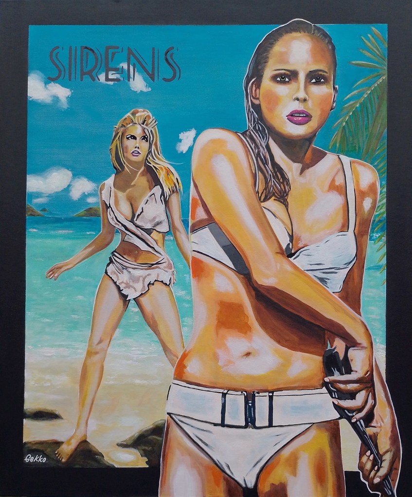 A friendly one with one of these girls riding it as a pet. If you could bring back one dinosaur, which one would it be? 1 million years BC meets a bond girl on a Jurassic island. Acrylic on canvas concept art. These girls are dangerous. Share this: Share on X (Opens in new window) X Share on Facebook (Opens in new window) Facebook Like Loading... Related