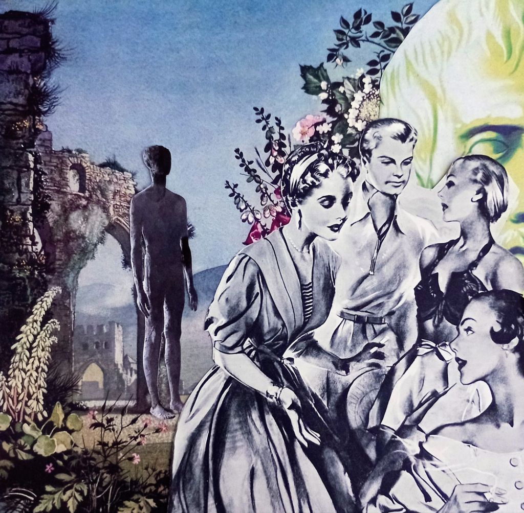 Oh…the search for inner peace. For me it’s projects. This one was made from lots of parts of scrap old broken magazines. A lot of happiness as well making this. Just a glue stick and some scissors and jiggling things around a bit. Now we have a whole new environment that tells a story as well.