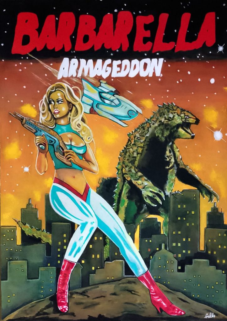 Concept Art poster. Barbarella comes to earth to rescue Godzilla from evil authority. Her goal to take him back home as a pet. Godzilla however thinks the same about her.