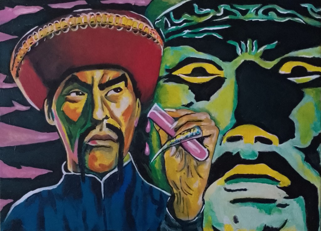 Artists can’t get breaks as creativity stops flowing and blockages step in. I found that my minds looking for the next project whilst I’m still actually doing one. This painting is a new adaptation of Fu Manchu. I like old school movies and comics and it compels me to create fan art. I love doing this as it keeps the characters alive.