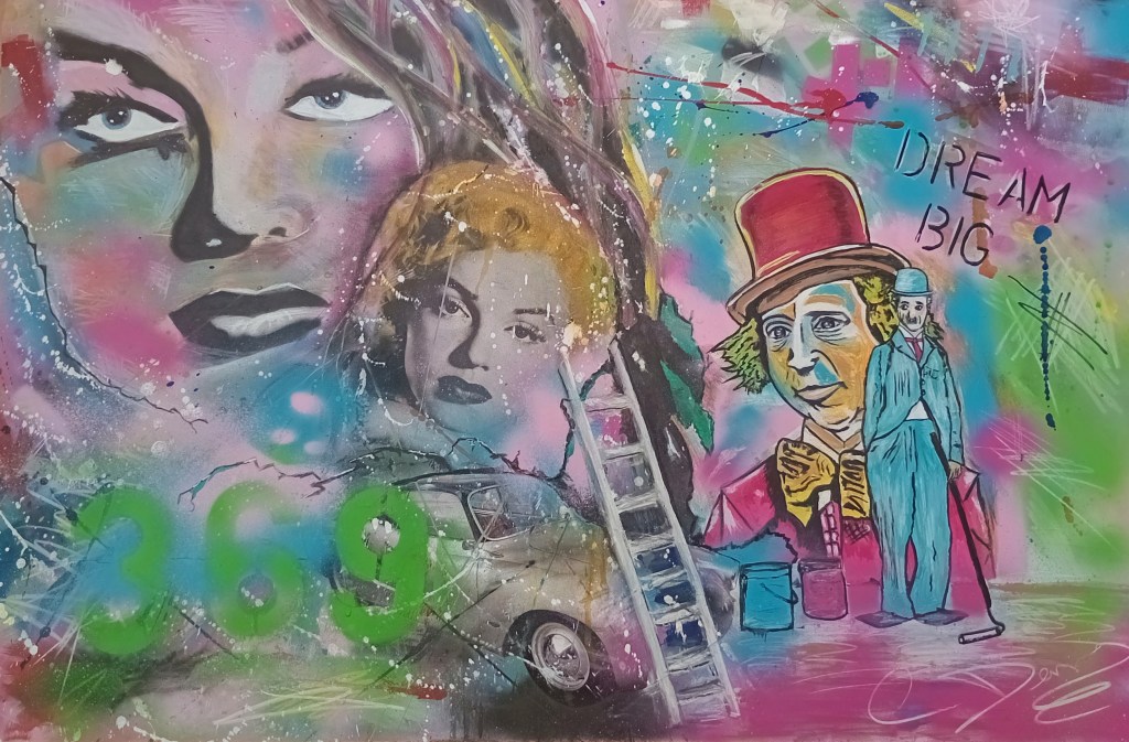 An old piece I did long ago size A3. Mixed media on paper. Inspired by Mr brainwash.